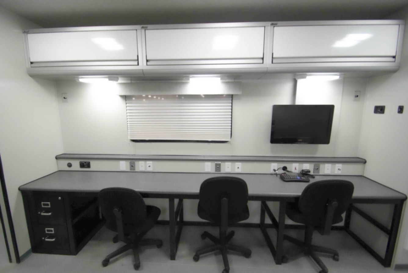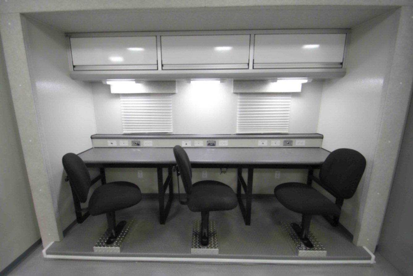- Two 110v, 12v, and CAT6 networking outlets with one antenna per workstation