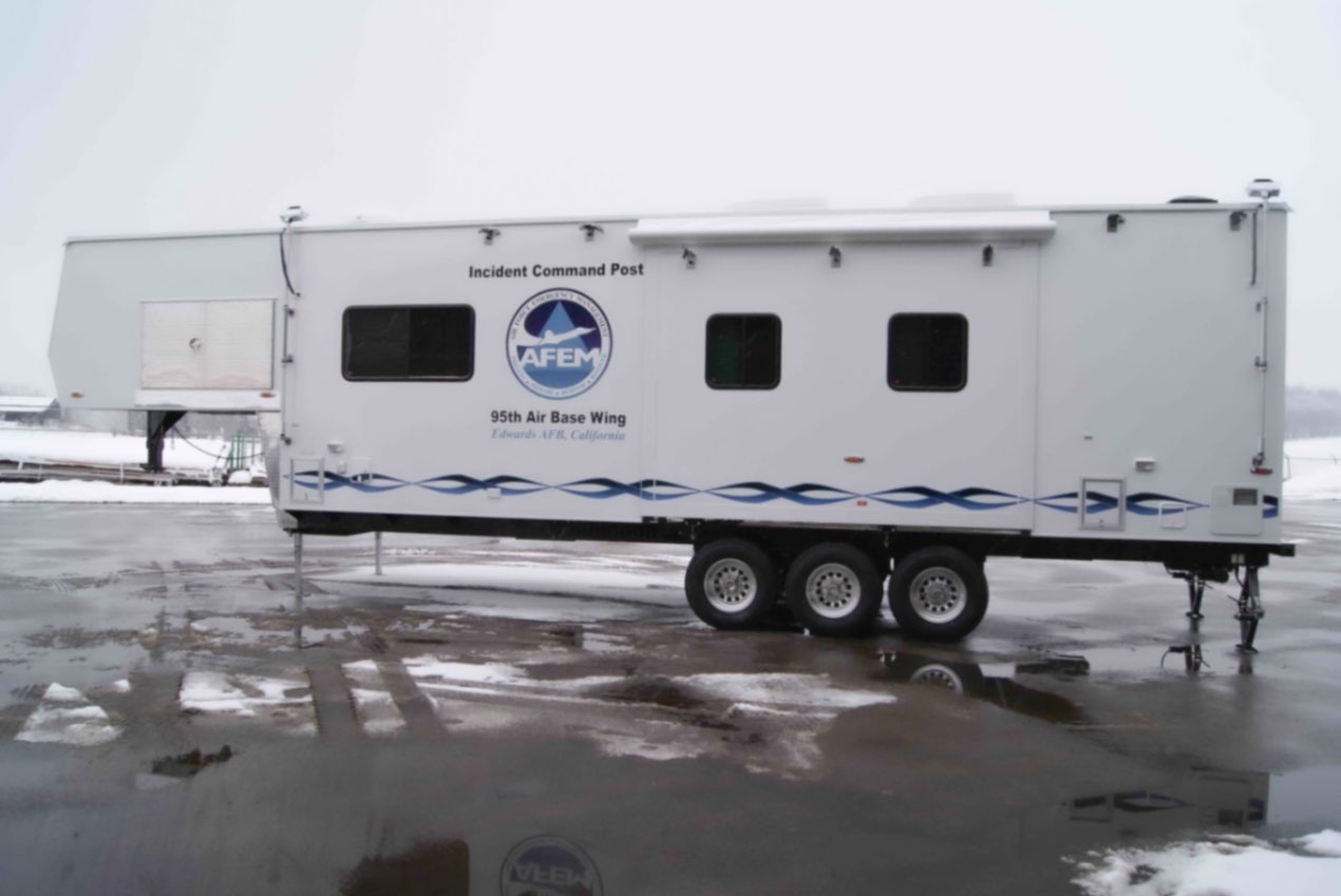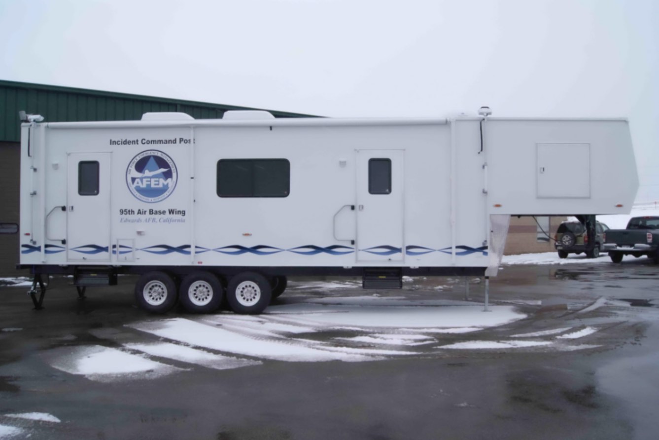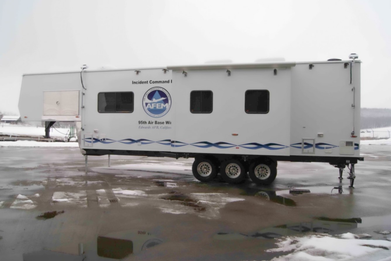 This Command 36-6WS FW SO was built by Mobile Concepts to function as an Incident Command Post (ICP) for Edwards Air Force Base in California. This mobile command center serves as the base’s Installation Emergency Operations Control Center, supporting the work of Emergency Management (EM) specialists who are tasked with preparing for, responding to, and recovering from both natural and man-made disasters.