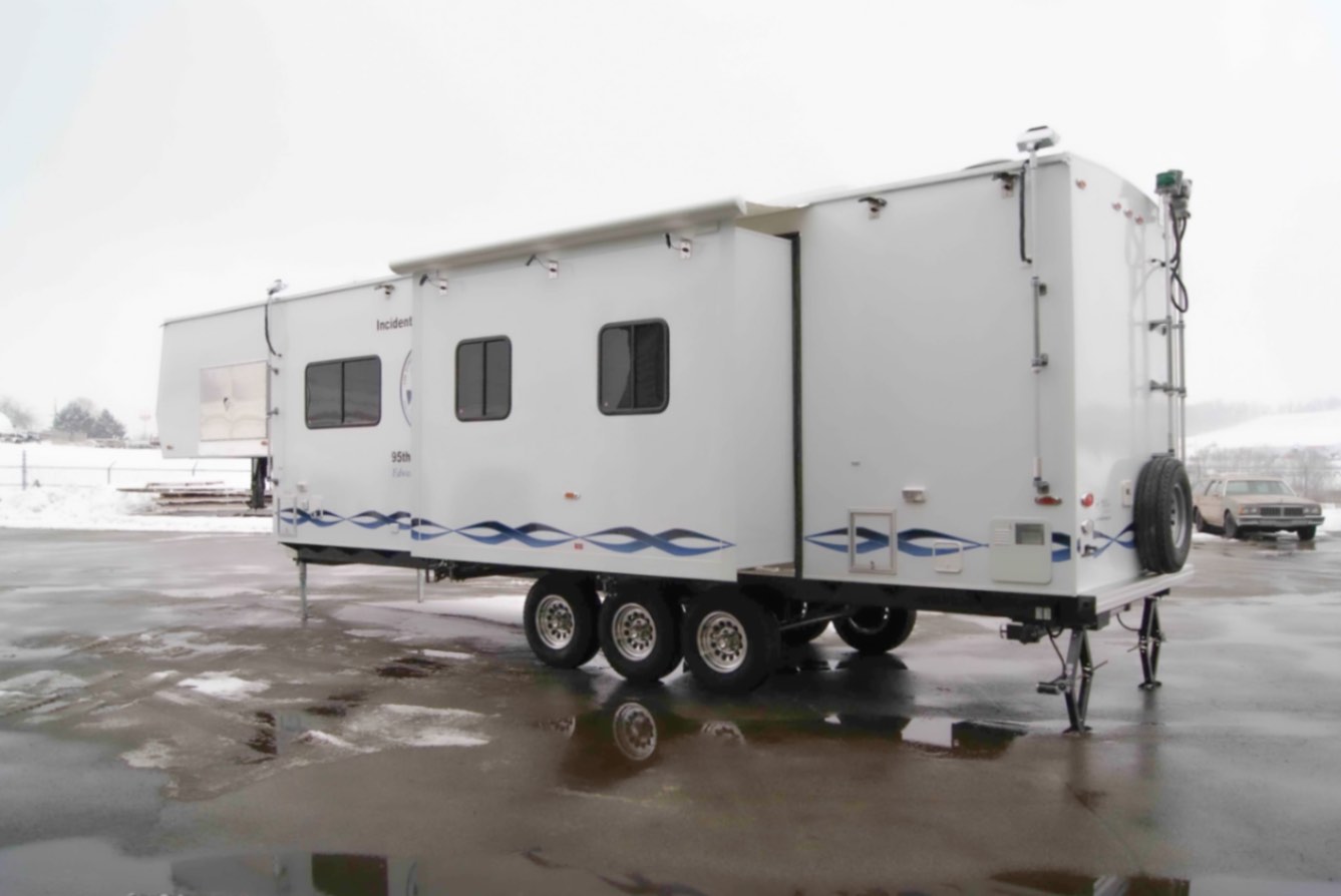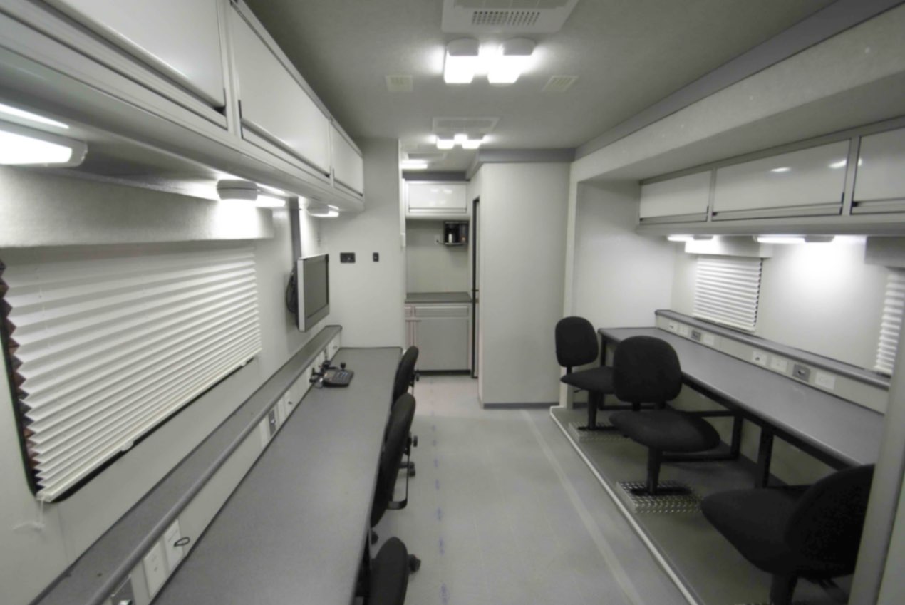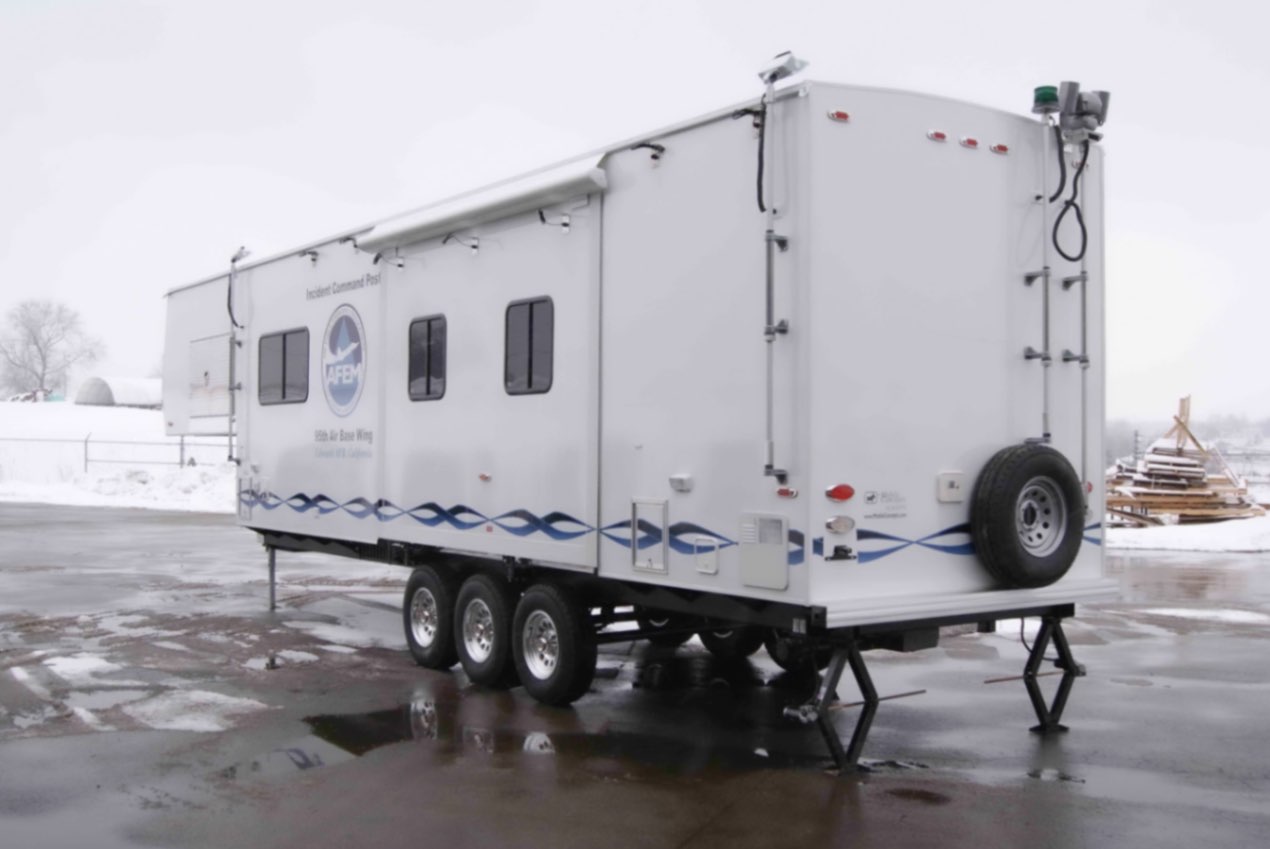 This Command 36-6WS FW SO was built by Mobile Concepts to function as an Incident Command Post (ICP) for Edwards Air Force Base in California. This mobile command center serves as the base’s Installation Emergency Operations Control Center, supporting the work of Emergency Management (EM) specialists who are tasked with preparing for, responding to, and recovering from both natural and man-made disasters.