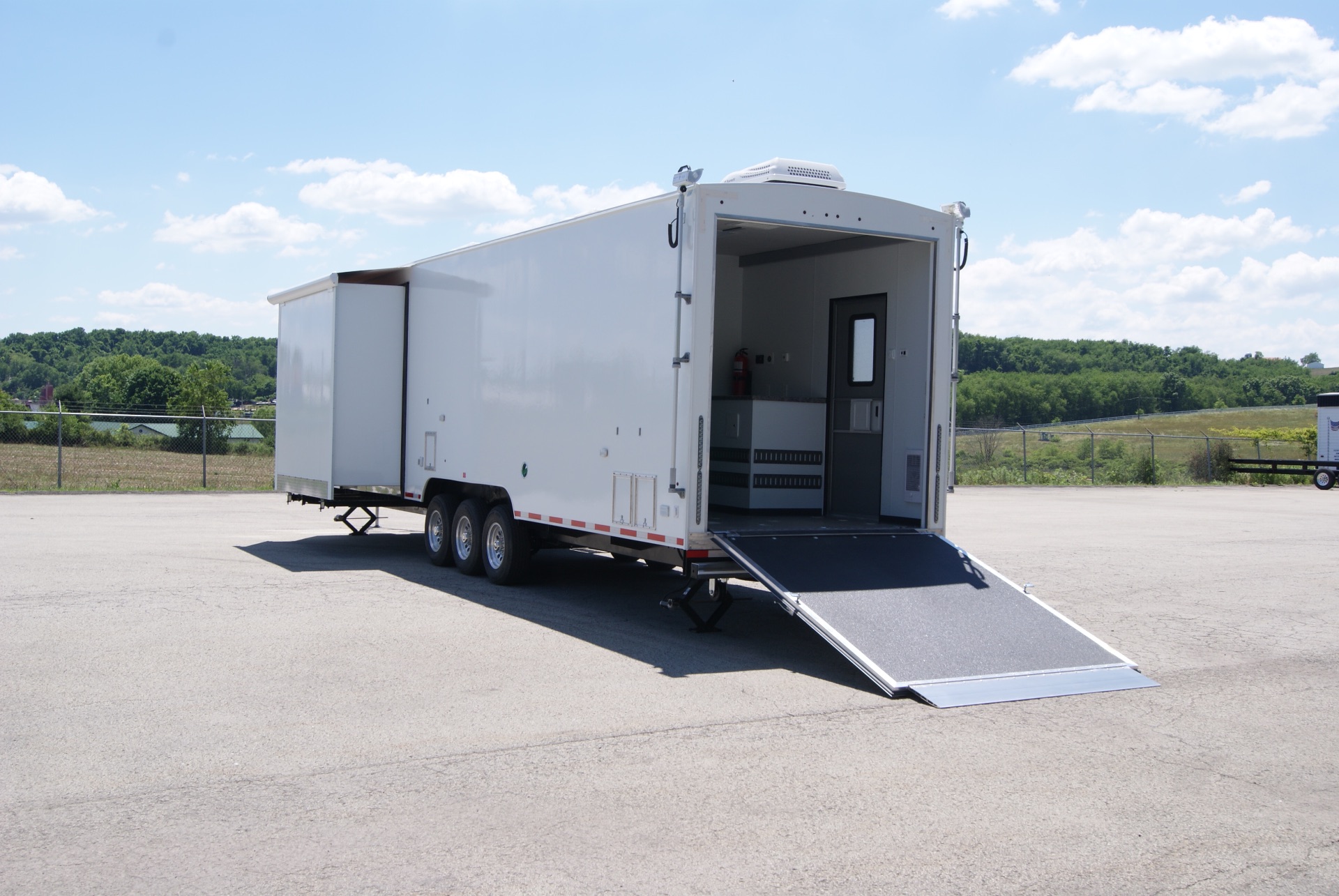 This Command 39 Rear Cargo Slideout trailer was custom-designed and built for the U.S. Department of State to serve as a demarcation point at events.