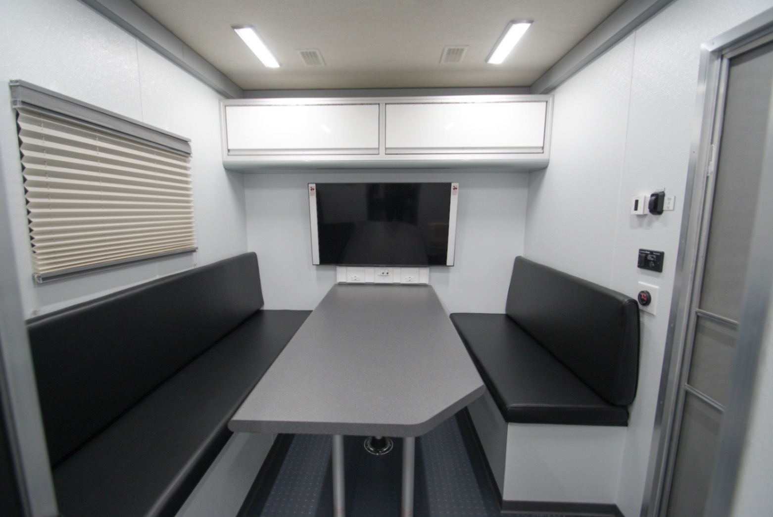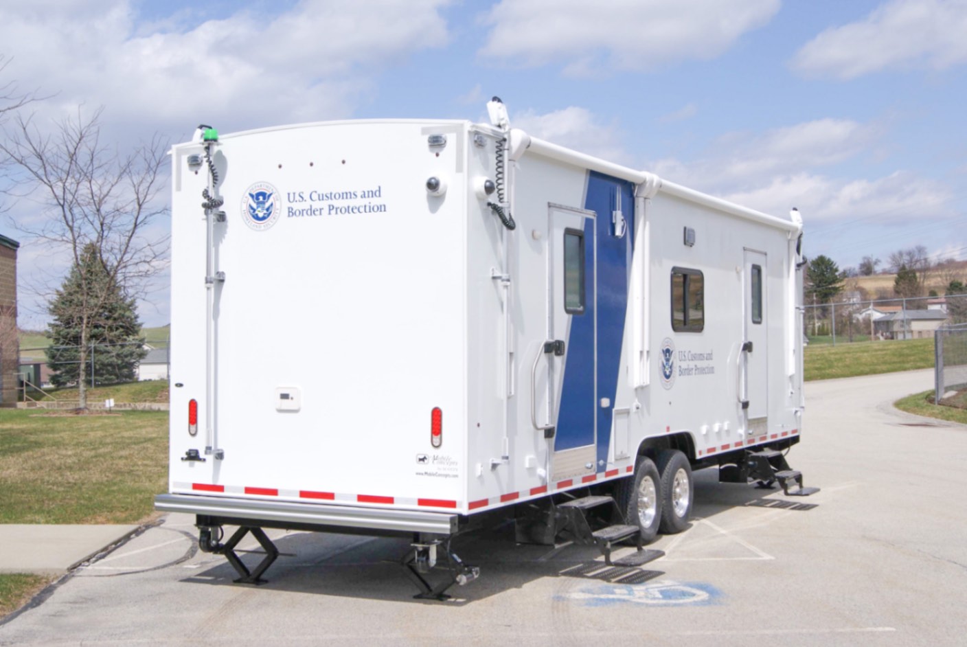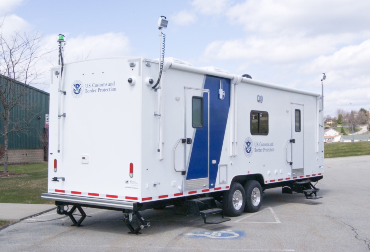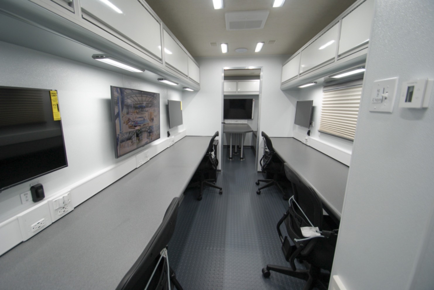 This Command MCAP 35 was purpose-built to function as a Mobile Command and Processing Center for the U.S. Customs and Border Protection agency. Designed for operational efficiency and mobility, this 35′ trailer is divided int four functional zones: a private conference room, a dedication workstation area, a galley, and a bathroom.