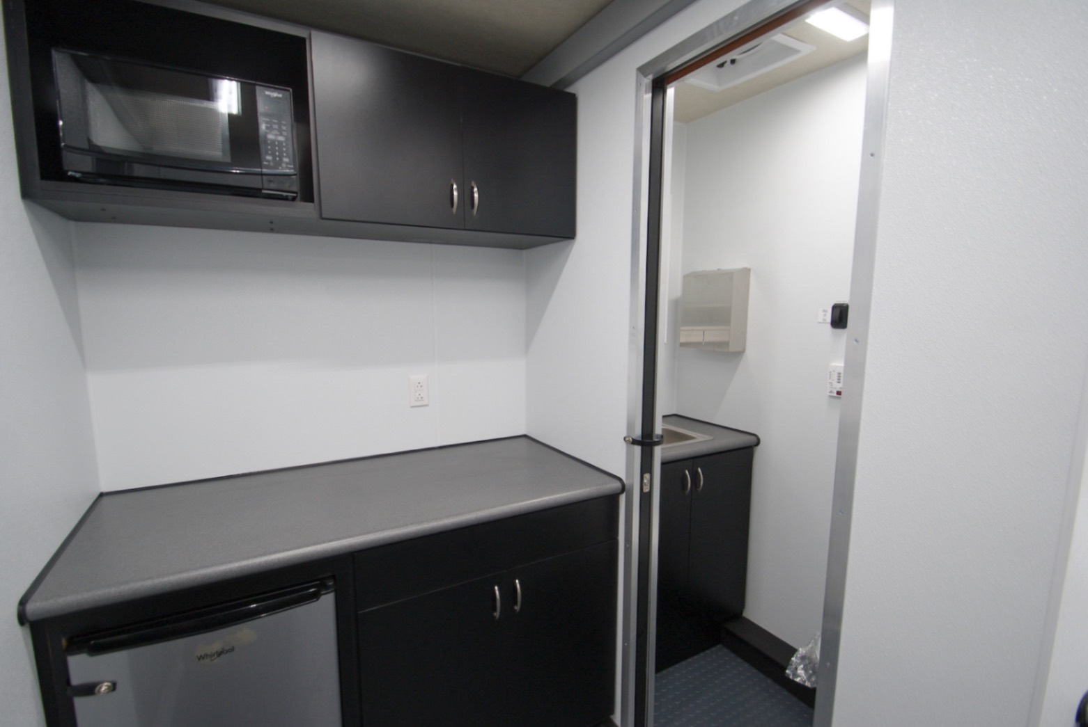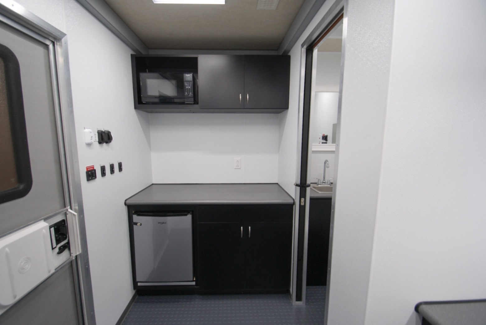 - Storage & Surfaces: Aluminum overhead cabinets and high-impact laminate counter tops